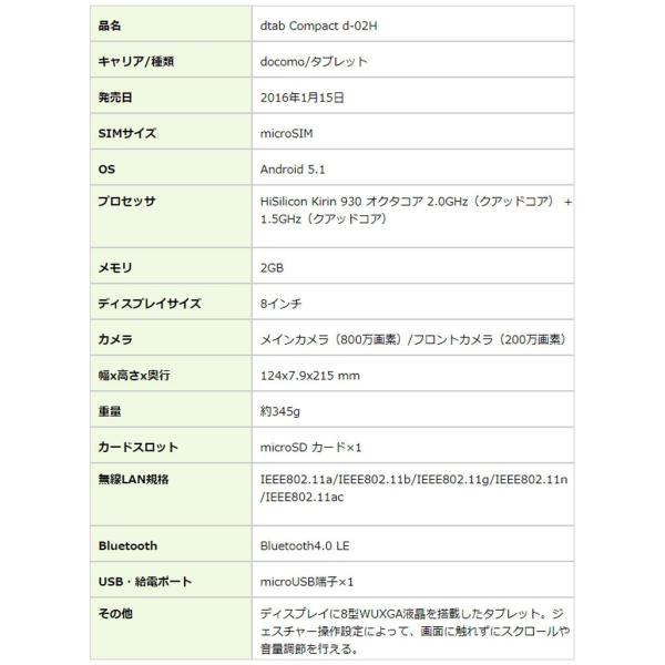 優れた Dtab Compact D 02h スペック サゴタケモ